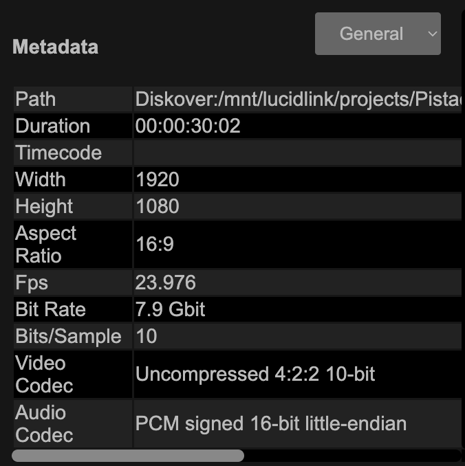 The media attributes are part of the metadata harvested exclusively by the AJA Diskover Media Edition. If a file at the source doesn’t include any of these attributes, it goes without saying that no details will be harvested and/or available.